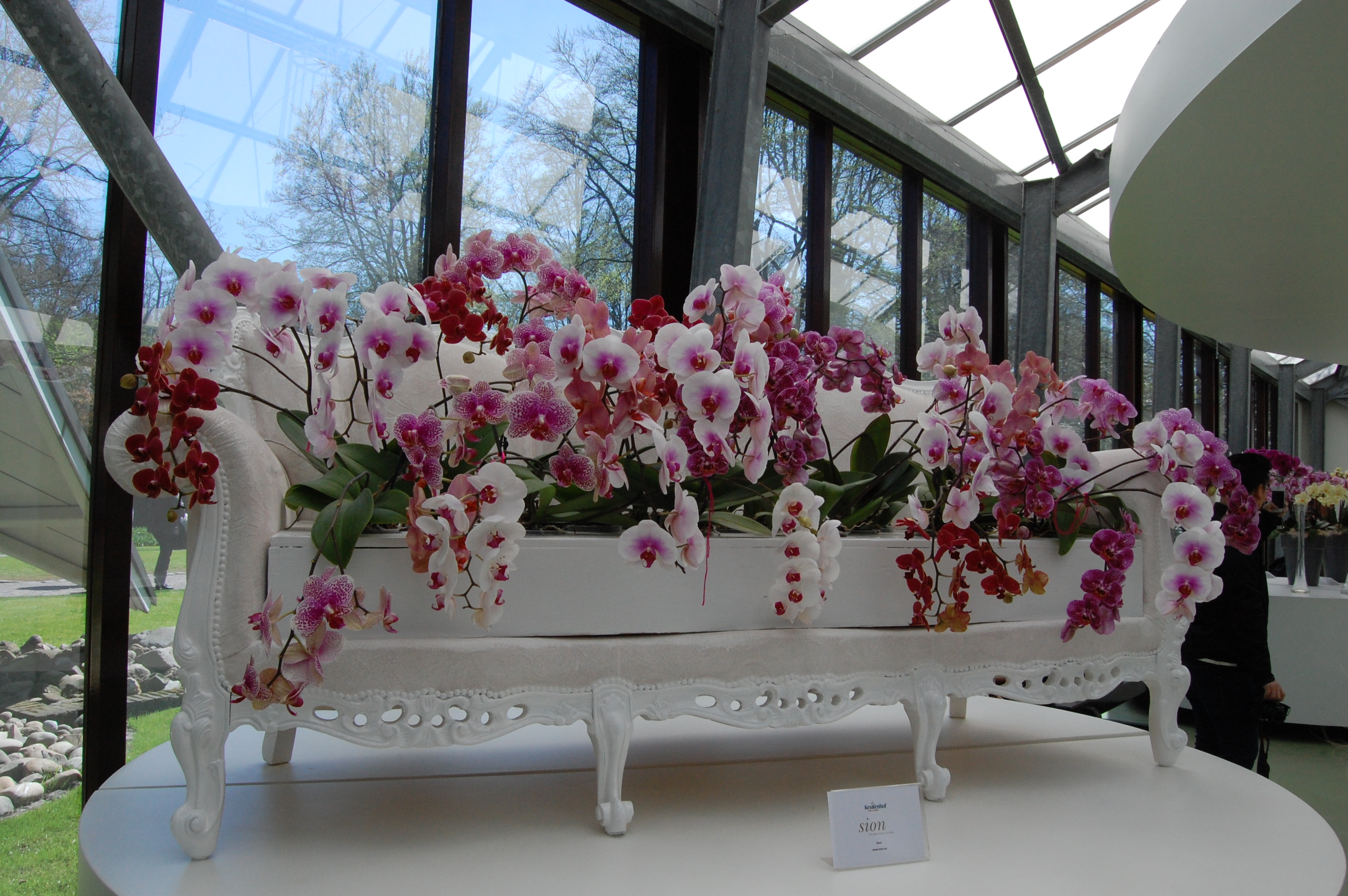 Jag gissar att du fattar att detta inte är mina orkidéer. Alla bilder är tagna i ett växthus i Keukenhof i Holland. Men jag brukar i alla fall ha ett par fönster fulla med blommande orkidéer. Brudorkidéer är bland det mest lättskötta man kan ha. Ungkarlsblomma skulle jag kalla det. Den ska ha vatten sällan och bara svag gödsel. Tål alltså att glömmas bort ett tag.