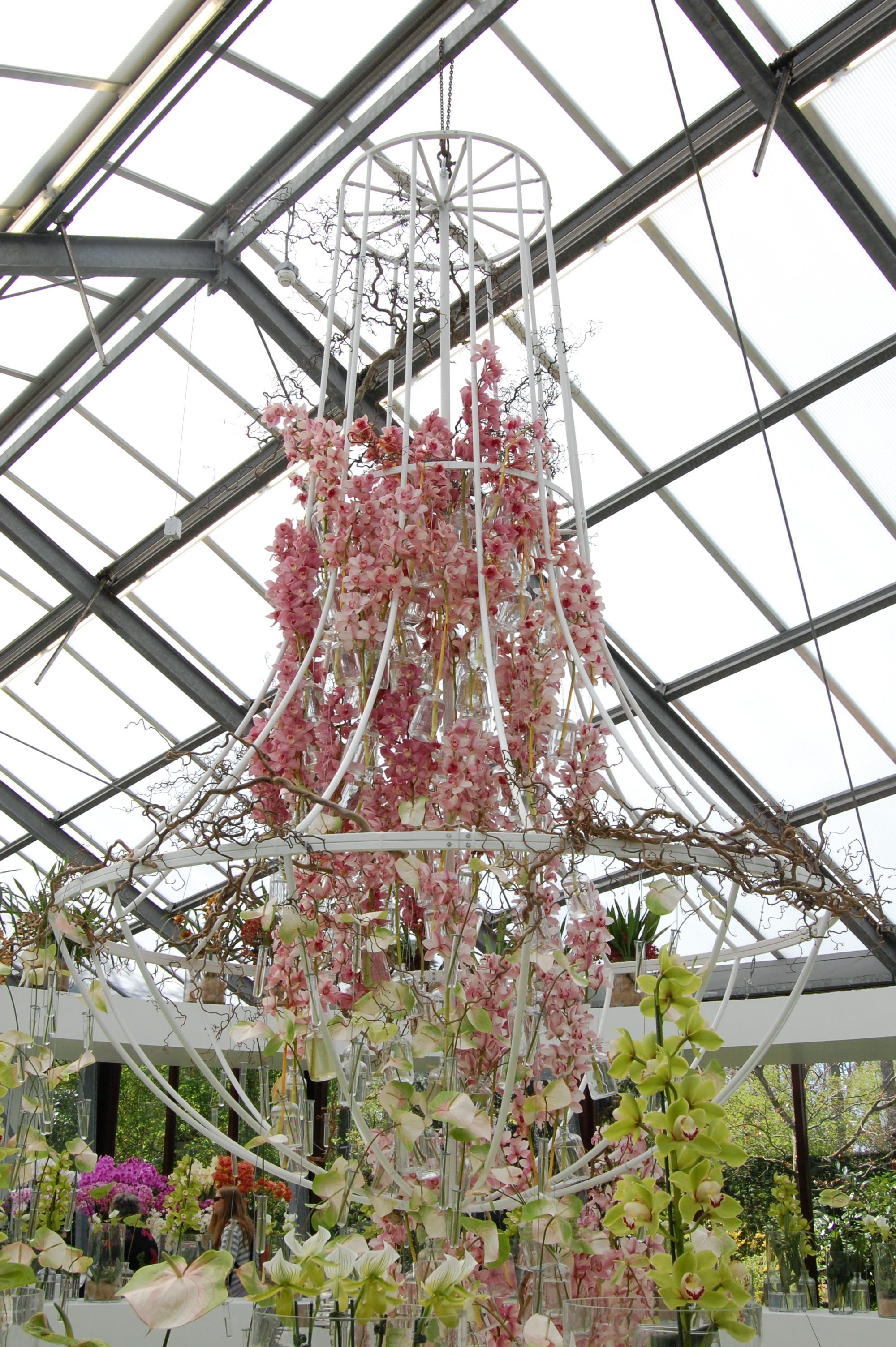 Cymbidium som fyller denna magnifika ljuskrona är mer svårskötta, men bara på det sättet att de behöver stå ordentligt svalt men ändå ljust på vintern, vilket jag inte kunnat ordna, så den fina planta jag hade i flera år åkte iväg till komposten då den aldrig blommade.
