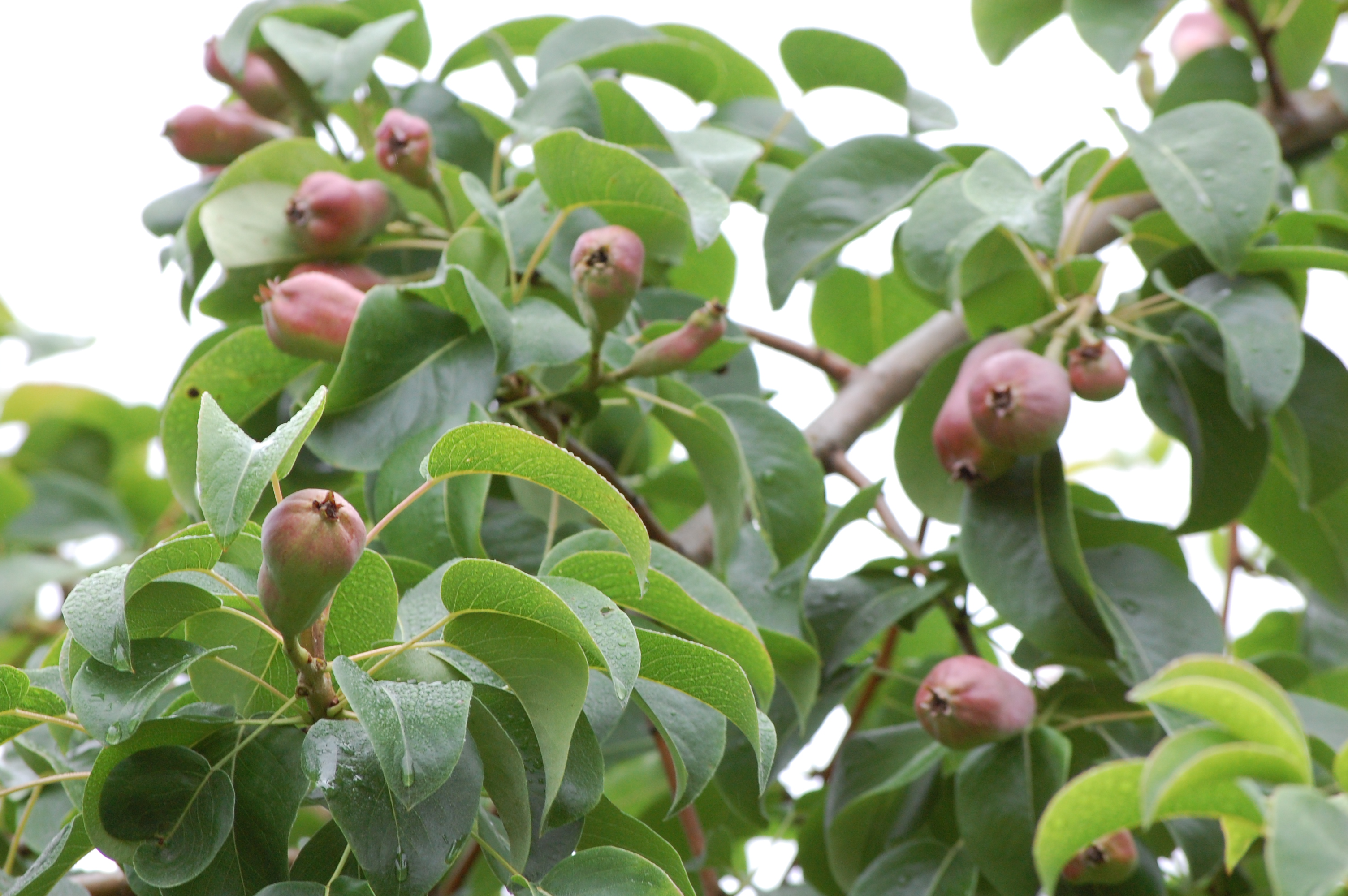 Vad härligt med frukt och bär från egen trädgård! Jordgubbsskörden är snart över och svartvinbären börjar bli söta och goda. Men jag går mest och väntar på mina första riktiga päron. Förra sommaren hann de inte mogna, men nu måste det gå. Det är massor av kart på mitt Suvenirsträd, den sorten ska ge 4-5 hg stora päron. Det blir nåt de`!