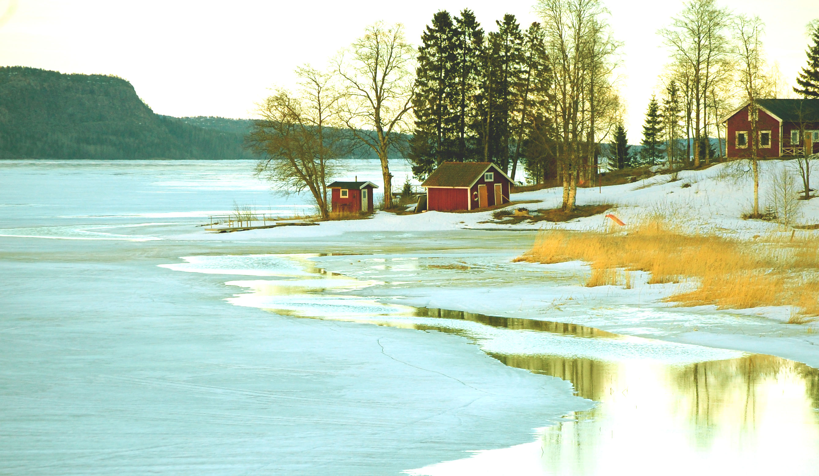 Äntligen har isen släppt land! Och vintern sitt hårda grepp! Det var så vackert så jag backade tillbaka bilen för att fota. Solen hann precis gå ner, men vackert ändå. Just timmen före solnedgången blir det fina foton.