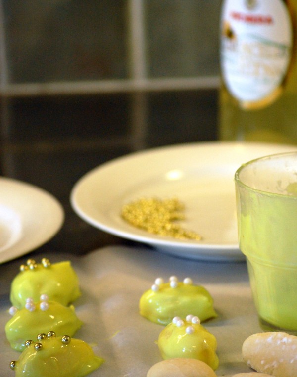 Dessa godisägg med vit choklad är försvinnande goda. Ja – de försvinner i ett nafs. Lagom krämig konsistens innanför ett hårt skal med innehåll av bland annat vit choklad och citruslikör. Roligt att få användning av flaskan med limoncello som jag köpt på Sicilien.
