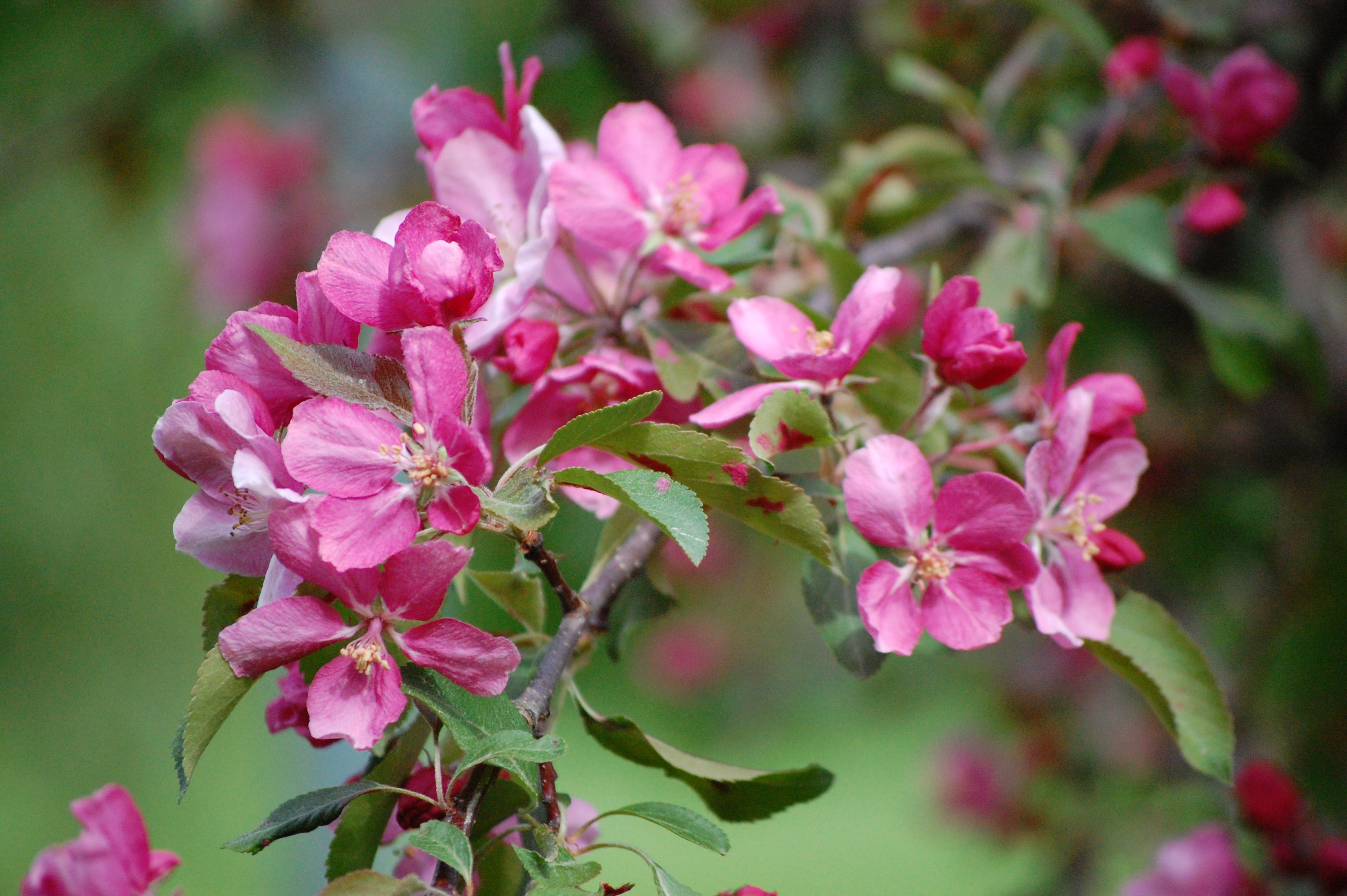 Prydnadsapeln Hopa blommar överdådigt i år, men har fått en konstig sjukdom. En cerise filtbeläggning under bladen matchar blommorna perfekt, men är inte bra för trädet. Jag måste undersöka vad som är lämplig behandling. Just Hopa är lite besvärlig och känslig, men vacker.