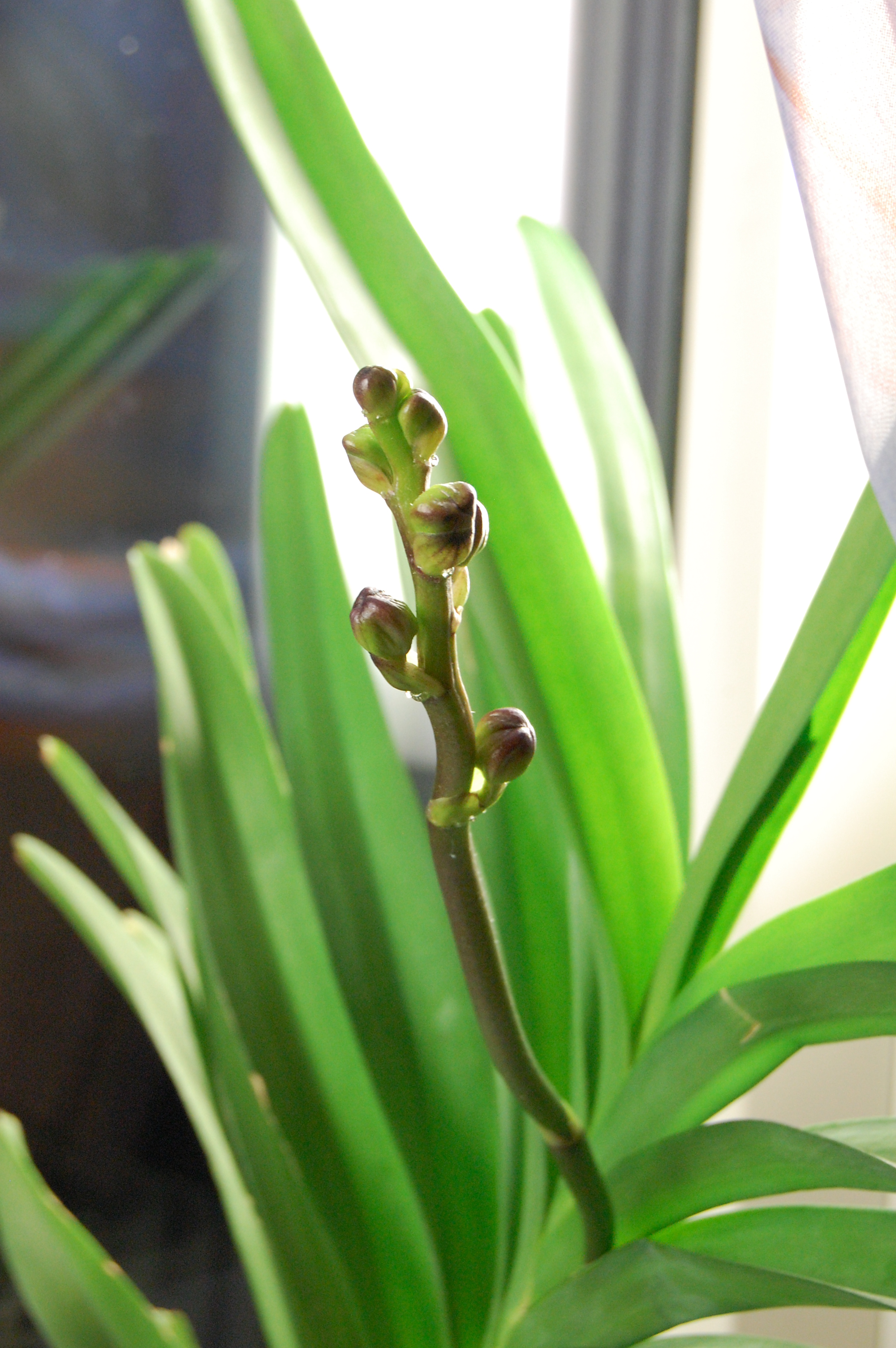 Vad spännande när Vandaorkidén kommer med knoppar varje höst. Den tjusigaste orkidén jag vet! Stora mörklila blommor. Den är en dyrbar skönhet, men jag hittade den till ett överkomligt pris för några år sedan.